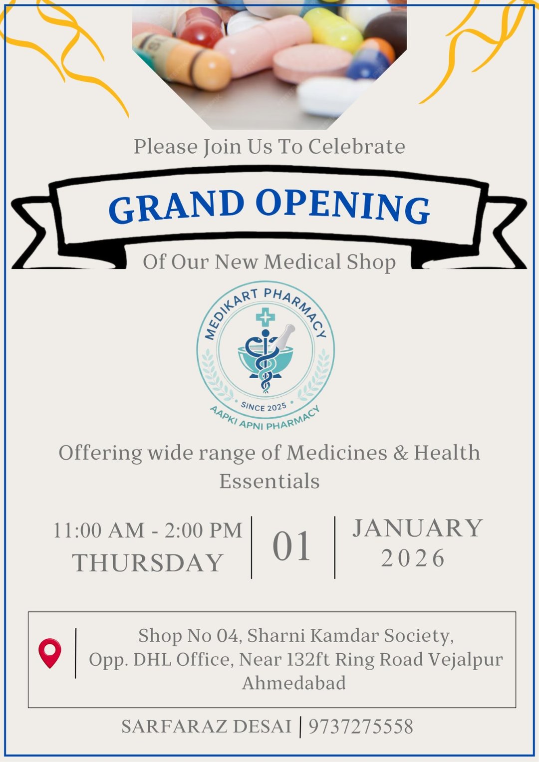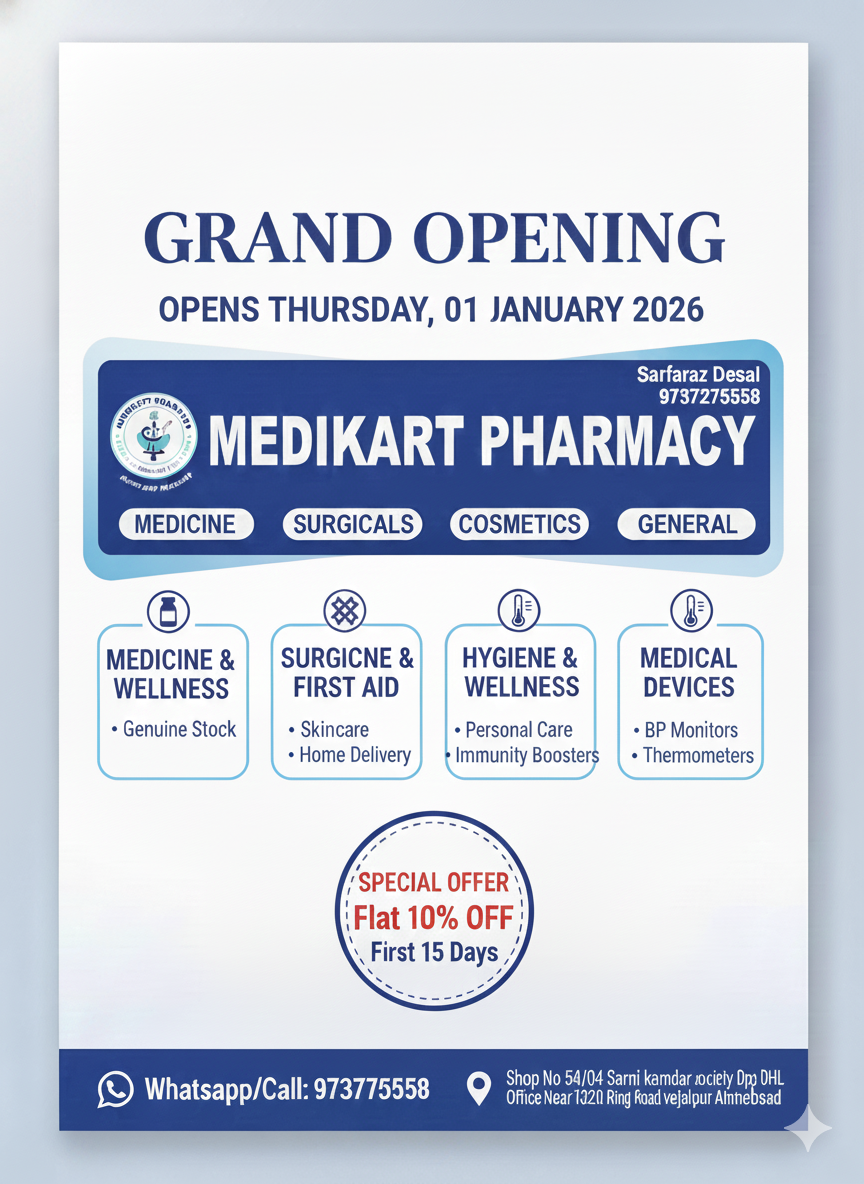 Medikart pharmacy (Best Medical Near me) medkart pharmacy medical store ahmedabad pharmacy lab vejalpur shop medicines